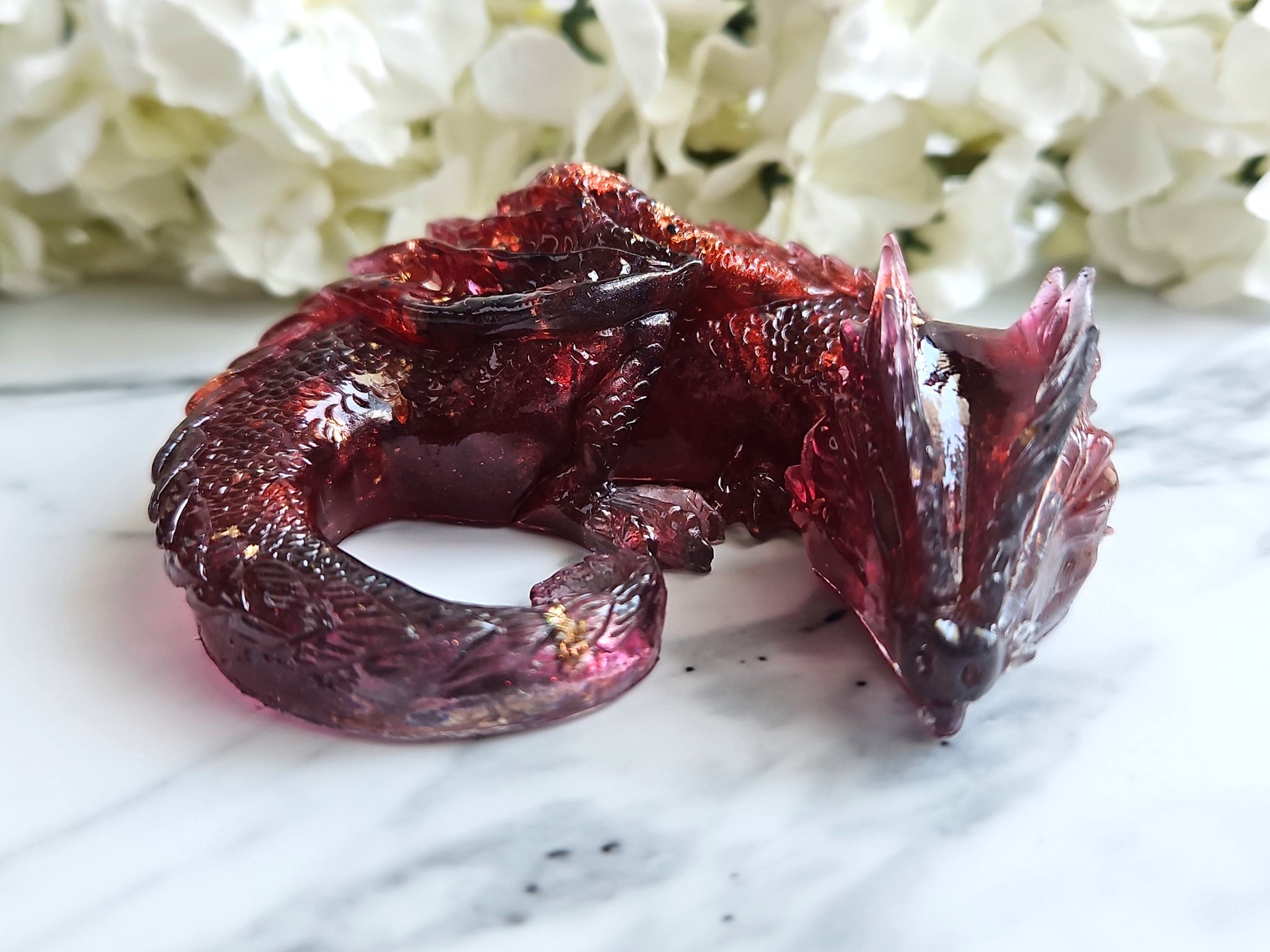 This adorable sleeping dragon guardian is cast in resin and can hold a single d20 in its tail. A perfect display piece for your bookshelf or gaming table.