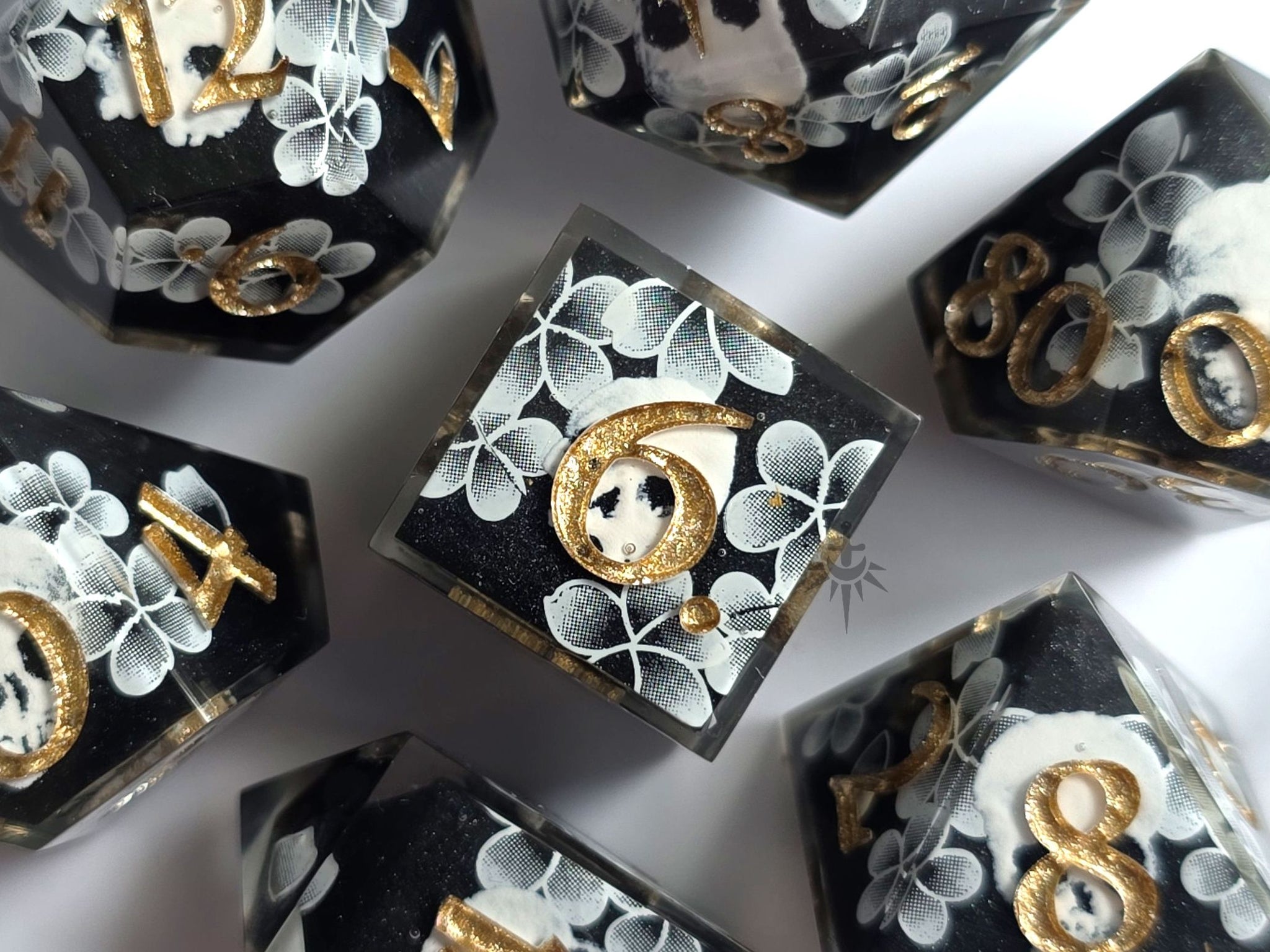 Mythril Foundry strives to create high quality products however due to the nature of being handmade, these dice may not be factory perfect. Whilst I do my best to ensure that each of my dice have minimal blemishes, upon close inspection you may find some small but visible signs of the crafting process such as mold seam marks or rough edges, painting errors, tiny internal (rare) or surface bubbles and/or other minuscule imperfections of this nature. Any major marks will be listed below and pictured (where possible) for your consideration prior to purchasing.