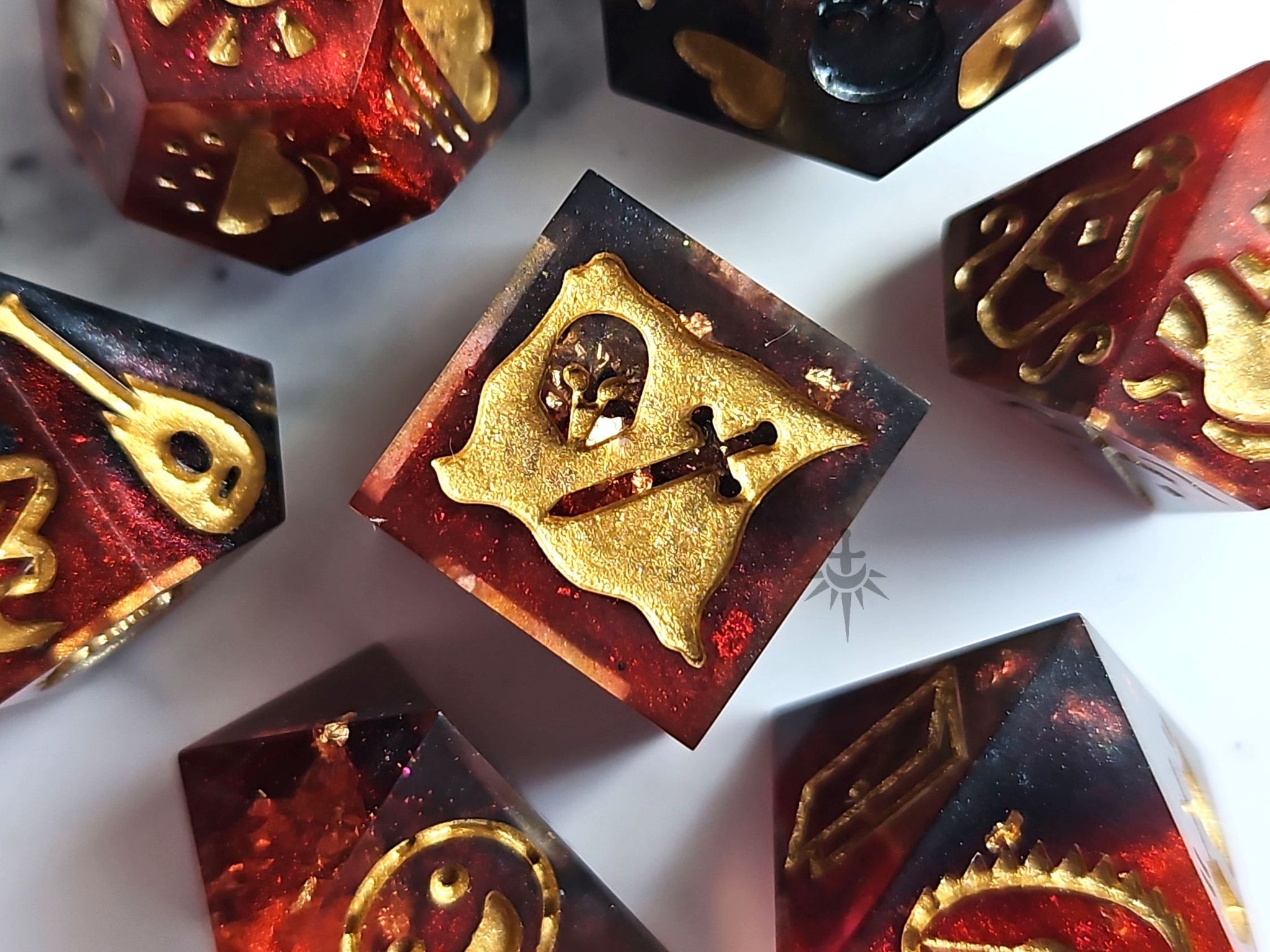 Mythril Foundry strives to create high quality products however due to the nature of being handmade, these dice may not be factory perfect. Whilst I do my best to ensure that each of my dice have minimal blemishes, upon close inspection you may find some small but visible signs of the crafting process such as mold seam marks or rough edges, painting errors, tiny internal (rare) or surface bubbles and/or other minuscule imperfections of this nature. Any major marks will be listed below and pictured (where possible) for your consideration prior to purchasing.