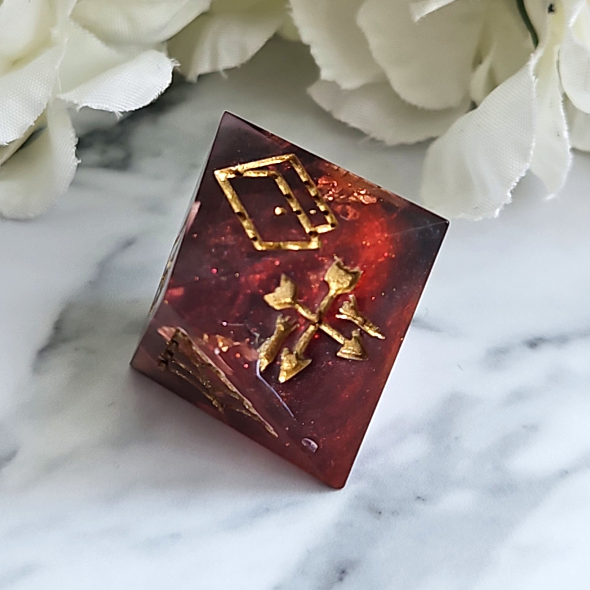 Mythril Foundry strives to create high quality products however due to the nature of being handmade, these dice may not be factory perfect. Whilst I do my best to ensure that each of my dice have minimal blemishes, upon close inspection you may find some small but visible signs of the crafting process such as mold seam marks or rough edges, painting errors, tiny internal (rare) or surface bubbles and/or other minuscule imperfections of this nature. Any major marks will be listed below and pictured (where possible) for your consideration prior to purchasing.