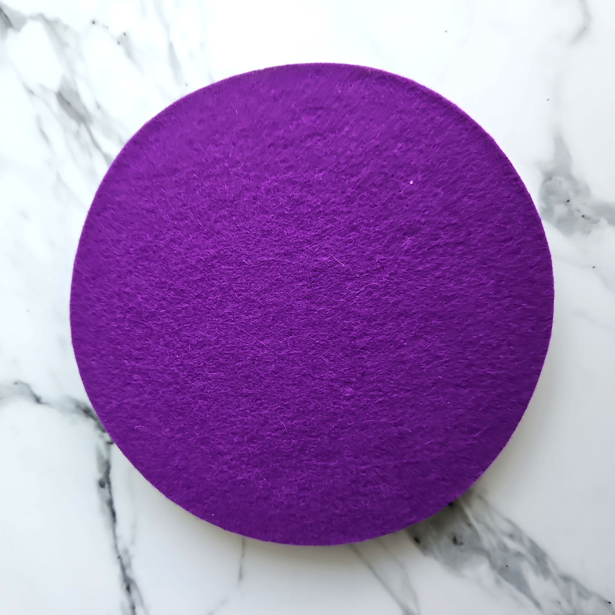 Shimmering shades of purple and blue swirl together with hints of rich gold, colour-shifting glitter and gold leaf throughout. Finished in a bright purple felt on the underside.